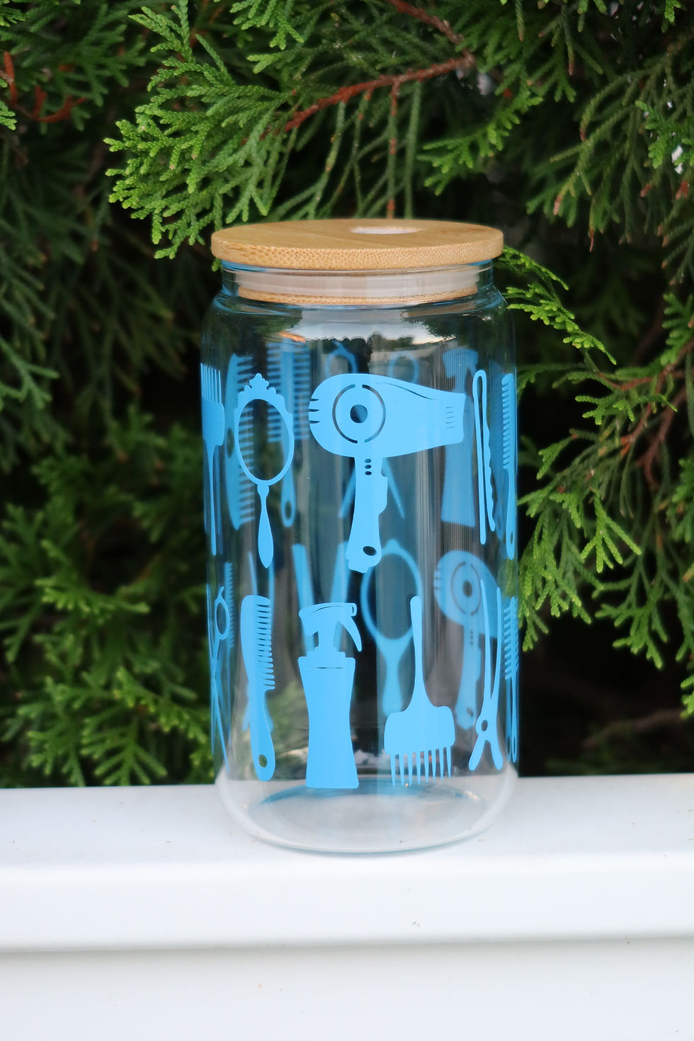 Hairdresser Glass Cup 16oz + Straw + Lid